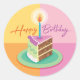 Uma fatia colorida de bolo de aniversário com um adesivo decorativo cor-de-rosa e verde em forma de gelo para colocar os toques finais em todos os seus desejos de aniversário.