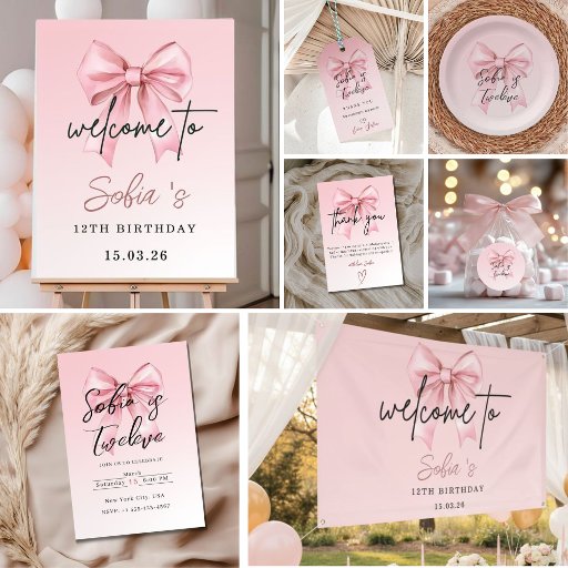Make your party details extra special with these pink bow birthday stickers, personalized with “Sofia is Twelve.” Featuring a soft blush background and an elegant hand-painted bow, these round stickers are perfect for girls’ 12th birthday party favors, treat bags, envelopes, cups, and decorations. Ideal for princess themes, coquette aesthetic parties, or chic pastel celebrations, they add a polished and coordinated finishing touch to your birthday décor.