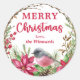 Adesivo Redondo Pink de Natal Robin Poinsettia Winter Wreath