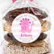 Announce to the world that your preschool grad has reached their milestone whenever you use this modern, simple, kawaii, personalized thank you sticker. A fun, whimsical, playful visual of a cute, bold, pink brontosaurus and fun, handwritten typography over a light pink and white striped background, honors the preschool grad. Add love and joy to your party whenever you use this simple, modern, and whimsical, custom round sticker. Personalize the custom text with your graduate’s name, class year and special message. Available in 2 sizes:1 ½” and 3”, square or round formats. Matching invites, banners, paper plates and napkins, table confetti and other graduation goodies are also available in this special and cool collection. Guaranteed to add stylish fun to their goody bags, envelopes – just about anything!