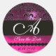 Adesivo Redondo PINK FUCHSIA PURPLE DAMASK MONOGRAM, violeta