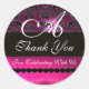 Adesivo Redondo PINK FUCHSIA PURPLE DAMASK MONOGRAM, violeta