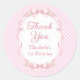 Adesivo Redondo Pink Gingham Bow First Birthday Thank You Sticker