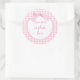 Adesivo redondo com uma imagem de gingham rosa e branco. O círculo branco personalizável tem uma borda rosa brilhante e um arco rosa bonito opcional com detalhes do cone do sorvete. Consulte papel de empacotamento correspondente. Ver toda a coleção Kidz Korner Sticker na categoria CARDS & STICKERS na seção KIDZ KORNER.