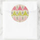 Pink & green abstract Christmas trees with snowflakes on round stickers. Perfect gift for Christmas or stocking stuffer.