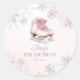 Adesivo Redondo Pink Ice Skating Birthday Silver Glitter Snowflake