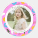 Adesivo Redondo pink name birthday modern floral romantic Sticker