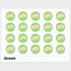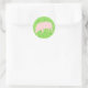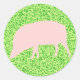This set of round stickers features a cartoon style pink pig. It has its head down ready to gobble up whatever food it can find. The background is a mixture of different shades of green to create the impression of grass.