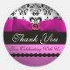 Adesivo Redondo PINK PRETO DAMASK RIBBON MONOGRAM Violeta Roxa