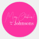 Esta é uma design de Natal moderna e feliz. Está em tendências a rosa quente e branco e tem a mensagem "Feliz Natal! dos Johnsons". Ideal para o seu presente de Natal, acessórios de correspondência, selos de envelopes e selos de festas nesta época festiva. Para personalizar, basta adicionar seu nome na caixa personalizar este texto. Aqui você também pode mudar o resto do texto se quiser. Verifique a ferramenta de edição de design para alterar a cor ou a fonte. Feliz Natal! Para obter ajuda com a personalização, produtos correspondentes ou para um email de design personalizado: ursuladawnmoon@gmail.com