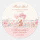 Celebrate the joy of your christian baby shower with this enchanting, personalized thank you sticker! Delicately designed on a dusty background, it exudes a shabby chic charm, perfect for your elegant event. Adorned with blush pink flowers and soft greenery, it captures the essence of natural beauty and serenity. In the center, a darling pink teddy bear floats among whimsical balloons, adding an irresistibly cute touch to your favors. Each sticker is a heartfelt expression of gratitude, thanking your guests for joining in your celebration of new beginnings and your blessing from above. Whether adorning favor bags, gift boxes, or envelopes, this religious and faith inspired thank you sticker adds a God-centered touch of elegance and warmth to every token of appreciation.