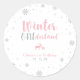 Adesivo Redondo Pink Winter Onderland primeiro aniversario Party F