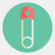 Este adesivo apresenta um gráfico vetorial de um pino de fralda rosa e branco, sobre um fundo lacrimogêneo.