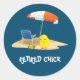 Adesivo Redondo Pintinho aposentado — cena da praia