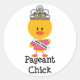 Uma pintinho bonita em uma teia rosa e a Miss Pintinho sash veste uma coroa de tiara belíssima na sua cabeça nestas camisetas de Pintinho, camisetas, sacos de tote, roupa e presentes para ela. Estes itens fazem um presente bonito para um concorrente de rainha da beleza. Trabalho de arte © Chrissy H. Studios, LLC. Todos os Direitos Reservados.