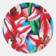 com a arte original de uma pintura aquosa de Sacha Grossel, de uma flor líbia brilhante, rosa-quente, do dia. Este assunto botânico tem pétalas cor-de-rosa intensamente contra fundo azul-céu num design floral colorido. A visão de perto e macro das flores é popular entre amantes florais de design.