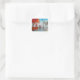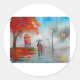 Adesivo Redondo Pintor do guarda-chuva vermelho do outono chuvoso