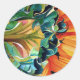com design de arte original de pintura aquosa de girassol brilhante, colorido, amarelo e laranja em foco próximo, estilo macro. Estilo único e detalhado, quase botânico, esse design floral lembra as flores ao sol num dia quente, verão.