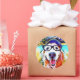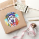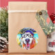 Estes adesivos redondos apresentam uma pintura de arte vibrante de um sorridente cão que recupera o ouro, que está vestindo um chapéu e óculos de nerd pretos.