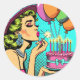Adesivo Redondo Pinup Pop da Retrora e Bolo de Aniversário