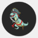 Adesivo Redondo Pirate Dinosaur T Rex Funny Tyrannosaurus Hallowee