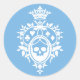 Adesivo Redondo Piso azul com varetas de crânio e roupas de cama