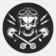 Crânio louco e pistões cruzados, com capacete de couro e óculos e relâmpagos. Desenho original de tinta B/W.