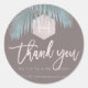 Adesivos de agradecimento da PixDezines com folhas de palmeira em prata, azul poeirento e monograma em falso foil rosa. DIY, veja a ferramenta de filtro para alterar o tom da imagem e outros elementos.