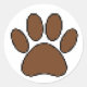 Uma impressão de pata de cachorro com efeito de pixel aplicado à imagem. Design de desenho original em preto e marrom.
