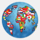 Ilustração do planeta Terra feita de várias bandeiras do mundo todo. Imagem disponível em vários presentes e produtos.