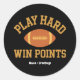 Adesivo Redondo Play Hard, Win Points Retro Game Day Sports