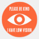 Adesivo Redondo Please Be Kind, I Have Low Vision