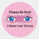 Adesivo Redondo Please Be Kind, I have Low Vision awareness
