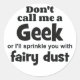 Não me chame de Geek, ou eu te drenarei com pó de fada. Que as pessoas à sua volta saibam em que é que se meteram e que estão prontas a defendê-la. Fonte preta.