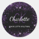 Adesivo Redondo Poeira de glitter roxo preto monograma iniciais no