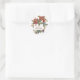 Adesivo de agradecimento personalizado para casamento de Natal retrata um desenho floral elegante pintado à mão com flores de poinsettia vermelhas e douradas, folhas de azevinho, frutos e sempre-verdes. O texto pode ser personalizado com detalhes de sua escolha._