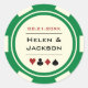 Casar em Las Vegas ou em outra cidade divertida do cassino? Estes adesivos verdes e brancos brilhantes faziam uma adição perfeita a uma caixa de favor, envelope, buffet doce e muito mais. Personalize sua design com seus nomes em preto no centro, e uma data de casamento, obrigado você, etc. em vermelho no topo. Coordenação de produtos disponíveis. Também disponível em outras cores. Cortesia gráfica de Revi Devi