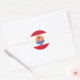 Bandeira da Polinésia Francesa. A bandeira da Polinésia Francesa foi adotada em 1984. Duas bandas horizontais vermelhas se cruzam com uma banda branca larga; centradas na banda branca está um disco com um padrão de onda azul e branca representando o mar na metade inferior e um padrão de raio-branco e ouro representando o sol na metade superior; uma canoa polinésia caminha sobre o padrão de onda; a canoa tem uma tripulação de cinco estrelas representadas por cinco estrelas que simbolizam os cinco grupos insulares; vermelho e branco são tradicionais Polinésios cores.