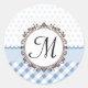 Adesivo Redondo Polkadots, cheques e tiras azuis com monograma
