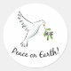 Uma bela pomba carregando um galho de oliveira. Um símbolo clássico de paz. Texto: Paz na Terra.