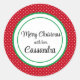 Saudações modernas de "Feliz Natal", padrão suíço vermelho e branco com nome enquadrado nesses adesivos redondos. Impresso em cor de cheio vibrante em papel brilhante; o mate também está disponível. Personalize facilmente usando o Modelo fornecido. Vinte adesivos de 1,5" por folha ou seis adesivos de 3" por folha. Consulte "Sobre este produto" ao lado para obter mais informações.
