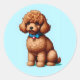 Adesivo Redondo Poodle de Brinquedo Castanho Adorável com Fundo Az
