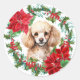 Adesivo Redondo Poodle Dog Poinsettia Holly Christmas Wreath