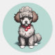 Adesivo Redondo Poodô Branca charmoso em fundo azul claro