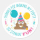 Adesivo Redondo Poop Emoji Festa de aniversário Engraçada Obrigado