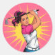 Adesivo Redondo Pop Art Girl Golfer Festa de aniversário