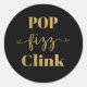 POP FIZZ CLINK vinheta redonda de folha preta e dourada