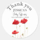 Cachorros vermelhos florais, flores de papoila, cor d'água da natureza Obrigado adesivos. Caligrafia elegante, simples, foto obrigado de bebê que você cola. Personalize-o com seus detalhes.
