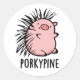 Adesivo Redondo Porky-Pine Funny Porcupine Pig Pun
