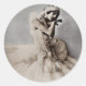 Prima bailerina com o rosto nas mãos está nas pontas dos dedos. Foto alterada artisticamente c1900.